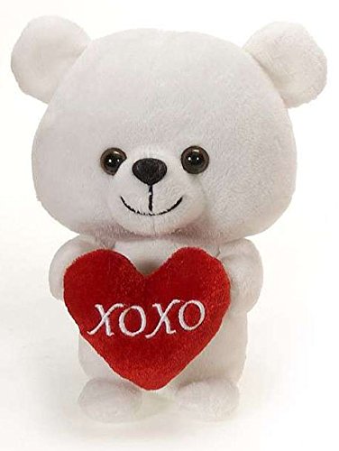 -. Title : Fiesta Toys Valentines Day White Bear Holding XOXO Heart Plush Stuffed Animal Toy - 6.5 Inches
