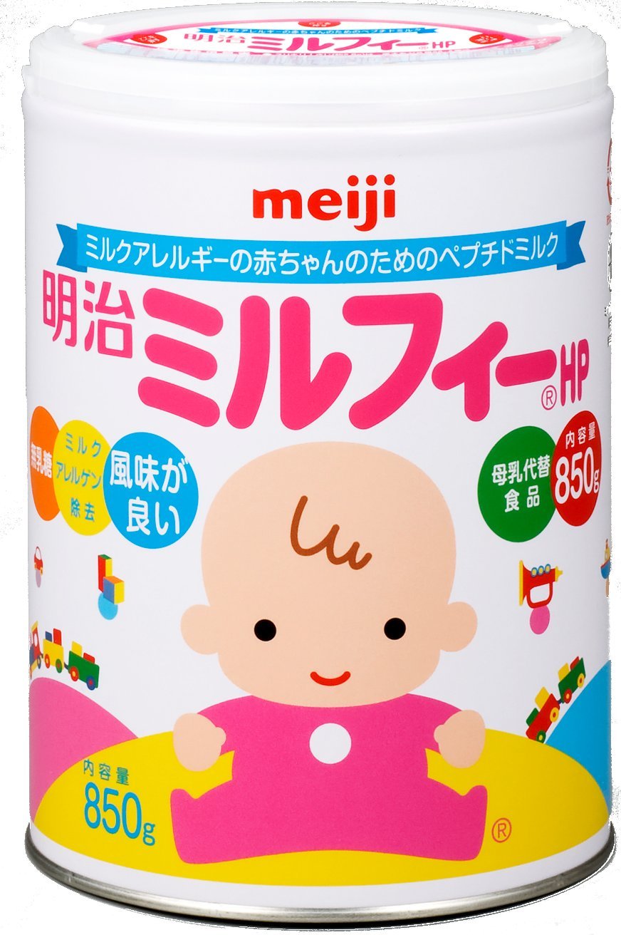 Japanese retail packaging ( Manual and instruction, if any, are in Japanese only. ) Net weight: 850g Size: diameter 135 * Height 181 (mm) Meiji'MIRUFI HP 850g for milk allergic babies is a milk for suckling infants with milk allergies, with a pleasant flavor that makes it easy to drink. It disassembles the whey protein that are also included in mother's milk, and lowers its allergenic properties (to 1/100th the levels of ordinary milk). The levels of bitter taste and acid odor are far lower than any other allergy-use milk on the market, and this makes it much easier for babies to drink. It contains absolutely no lactose. It is composed of fructo-oligosaccharides and nucleotides, which are easily digestable. Also, DHA-creating alpha-linolenic acid and linolenic acid are combined with good balance, so that the overall fatty acid composition is as close as possible to that of mother's milk. Care has also been taken to improve the digestion and absorption of fat, and minimize burden on the digestive tract. The osmotic pressure is also close to that of mother's milk. The soluble powder granules and convenient container make it easy to use for milk formula. This special utilization food product is approved by the Ministry of Health as a food product that removes milk allergens from food, and also as a lactose-free food.