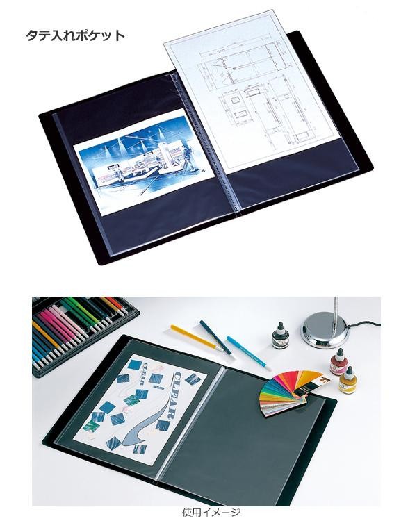 作品や図面、資料を引き立てる黒台紙仕様のホルダーです。タテ入れポケットが10ポケットついています。 |