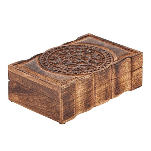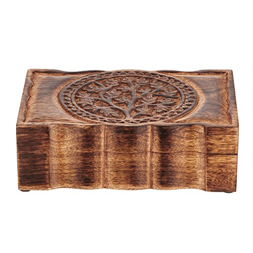Hand carved out of beautiful mango wood, this decorative box comes with a Tree of Life design on the lid.