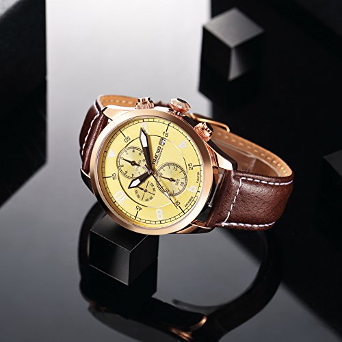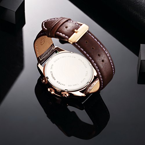 Watch multi-function Men's, 30M waterproof, stopwatch, date, luminous index racing dial, multi-needle analog display, presentation genuine leather band of the day of the strengthening Crystal Case father, stainless steel buckle, good quality quartz movement Time100 brand, the date of purchase from 30 days within replacement warranty, use of the warranty period one year b stopwatch: / b br br press one second button on the right, will start the stopwatch second panel of the bottom, then, this button also press once, to stop the stopwatch . And press the third button on the right, zero reset of the stopwatch. Description of the b waterproof performance: / b br br 30m: is waterproof function of degree that can withstand sweat or washing the face at the time of the water droplets, rain showers in the day-to-day life.