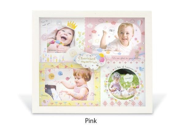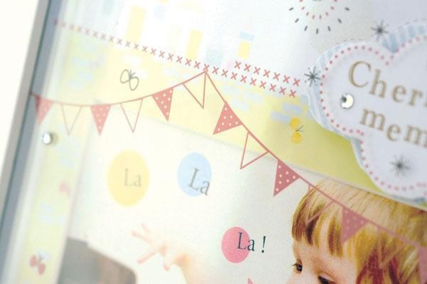 | 賑やかでかわいらしいイラストがふんだんに散りばめられた、楽しい多窓フォトフレームです。イラスト・ラインストーン・ガラスに施されたプリントが層になり、中に入れる写真を彩ります。サービスサイズの写真を重ね合わせて入れられるので、大切な写真をカットせずに収めることができます。 |