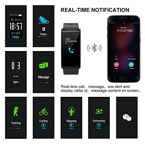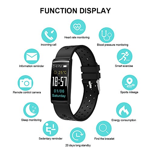 -. Feature : Tracker Your Workout: Heart rate monitor,step count,distance,calories burned.As well as your sleep quality metric.Get your P.R.Ivate health assistant now. / Heart Rate & Sleep Monitor: The fitness watch can monitor your heart rate to help you do exercise scientifically and accurately monitor total effective sleeping time and motions every night, you can better understand your sleeping quality. / Waterproof fitness tracker:IP67 sealing fitness tracker waterproof and dustproof design.Generally the waterproof fitness tracker is normally used in face/hand washing,swimming,getting caught in the rain,playing in the water park.IP67 standard applies to 1m below water for 30 minutes. / Easy to Charge:Charge easily on USB power port or PC by the host out.No extra charge cable hassle.HYON support many function which make our life simple.Such as message notification,alarm clock reminder,Sedentary reminder,mobile phone anti-lost,incoming call reminder. / Warranty&Warning:1-year-warranty,30-days money back,life time activity tracker technical support.Theoretically the wristband supports phone or tablet system IOS 8.0 or above and Android 4.3 or above.Easy charging with USB port without any cable,using time 7days,standby 20days.Best fitness tracker for women,men,kids