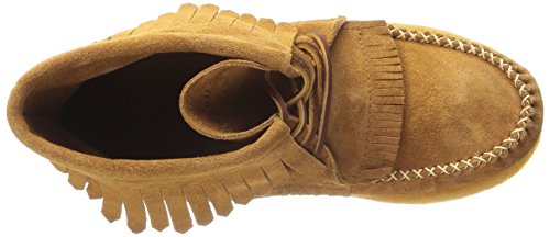 Eastland vintage fringe suede ankle boot paired with a natural crepe sole. Hand sewn using traditional true moccasin construction and premium soft suede to wrap your foot in comfort. Rolled collar, double fringe with kiltie and crisscross toe seam. Rawhide leather laces. Genuine plantation crepe rubber outsole gives retro appeal while providing great slip-resistance, durability and shock-absorbing cushioning. Boot height: 4 1/2. Heel height: 3/4.