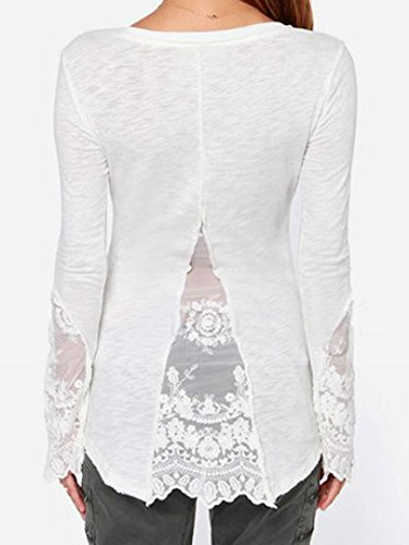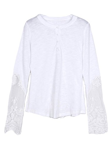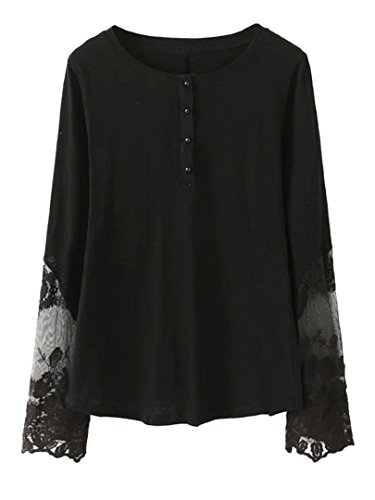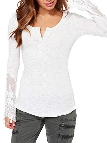 -. Title : Choies Women Casual Button Long Sleeve Sheer Lace V Neck Slim Tops T-shirt