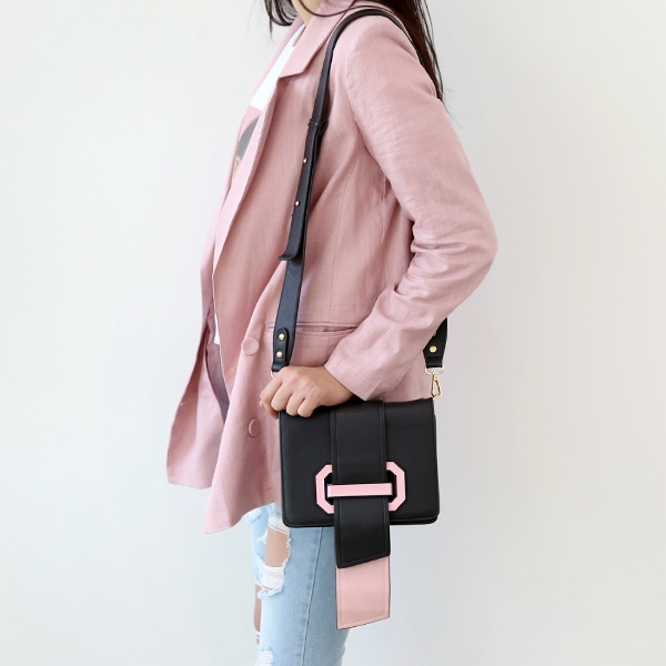 |        | COLOR | 블랙 / 화이트 / 핑크 / 민트 | | 제품 색상은 모니터에 따라 실제 색상과 차이가 있을 수 있습니다. | | | | FABRIC | 합성피혁 | | | | PRODUCT ION | 제조국 / 중국 | | 품질보증기준 / 소비자분쟁 해결기준에 따름 | | A/S 책임자 및 고객센터 / 감성가방 | | | | SIZE INFO | 사이즈는 측정 방법에 따라 1~2cm의 차이가 있을 수 있습니다. | | 스트랩 길이는 연결 고리를 제외한 길이이며, 최대 길이입니다. | | (단위:cm, g) | | 가로 길이 | 세로 길이 | 너비 | 손잡이 높이 | 스트랩 길이 | 무게 | | 18.5 | 14 | 8 | - | 50(조절o) | 530 |  |