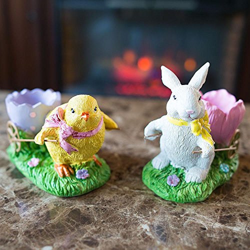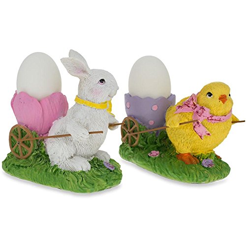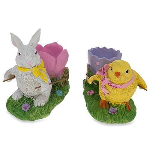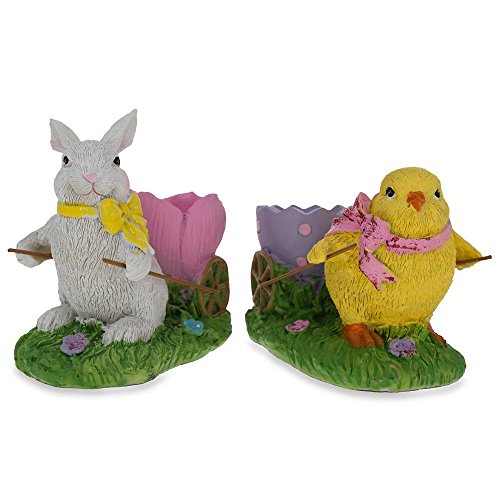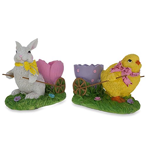 5" Set of Chick and Bunny Carrying Easter Egg Holder Figurines