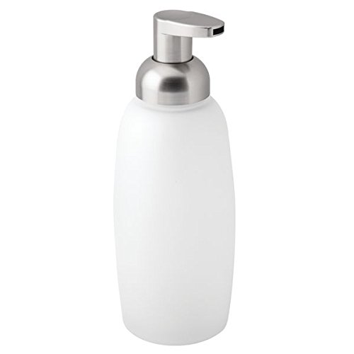mDesign Foaming Glass Soap Dispenser Pumps for Bathroom Counter, Vanity- Pack of 2, Frost/Brushed