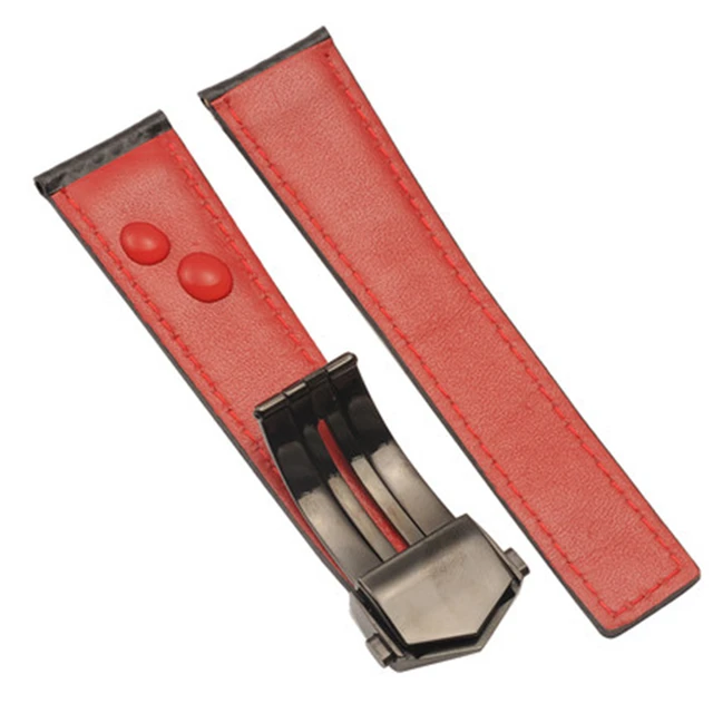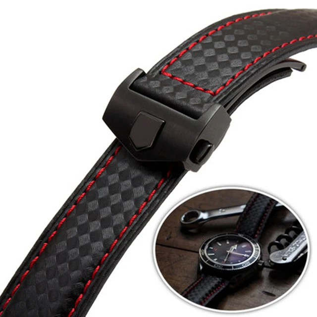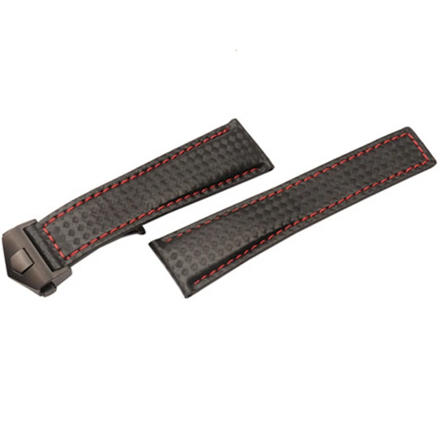 | [해외] TJP 브랜드 20 미리메터 22 미리메터 높은 품질 블랙 탄소 섬유 가죽 손목 시계 레드 스티치 스트랩 팔찌 태그 카레라 시계 |