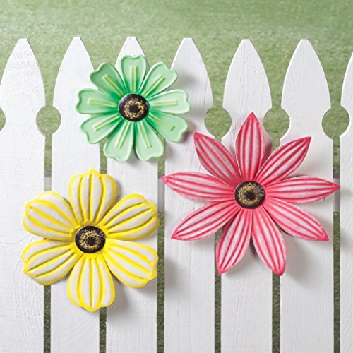 - Beautifully detailed 3 piece flower set will add a colorful focal point to any wall, fence, porch or door.