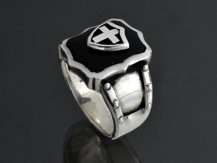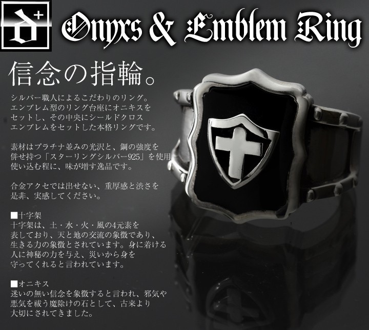 オニキス シールド クロス リング シルバー925