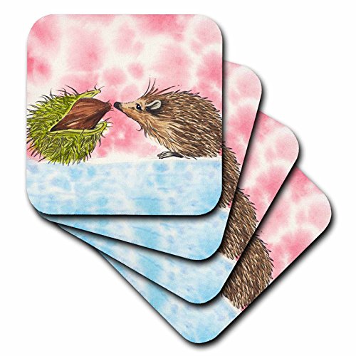 3dRose Cute Baby Hedgehog Meeting a Chestnut - Ceramic Tile Coasters, Set of 4 (cst_216482_3)