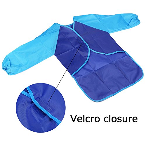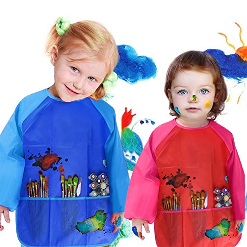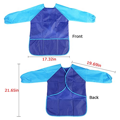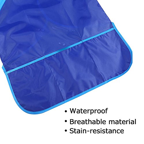 Features: ☆High quality Waterproof material,can be cleaned easily ☆BPA free,which is a HUGE consideration ☆Velcro design ensures easy wearing and taking off ☆Three small pockets,so your child can store and carry items ☆Long sleeves,so you get appropriate coverage of both the body and arms ☆Boys and girls aged 3-8 years old are recommended to use ☆Widely used for painting,writing,eating,playing and many other children activities