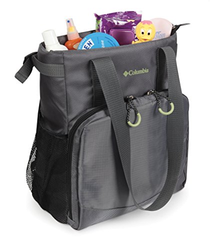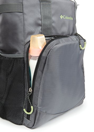 Columbia Canyon Heights Convertible Tote Diaper Bag - Gray. When you and your baby head out for the day, bring along the Columbia Canyon Heights Convertible Tote Diaper Bag. This convertible tote diaper bag features an ample main compartment with interior pockets to help keep you organized. A front panel features two additional pockets, including an insulated bottle pocket which is lined with a Therma-Flect radiant barrier to help keep milk fresh. The convertible 2-in-1 design allows you to easily transform the bag from a tote to a backpack with a padded back panel for easy transport. The included padded changing mat and messy bag help you stay prepared for stops along the journey.Feature