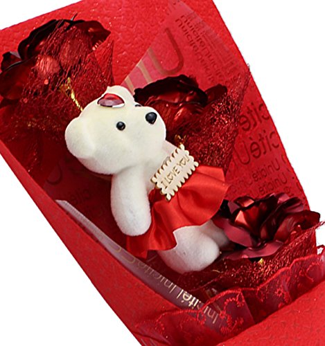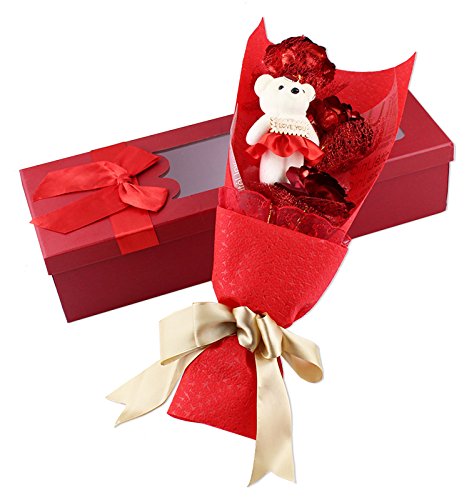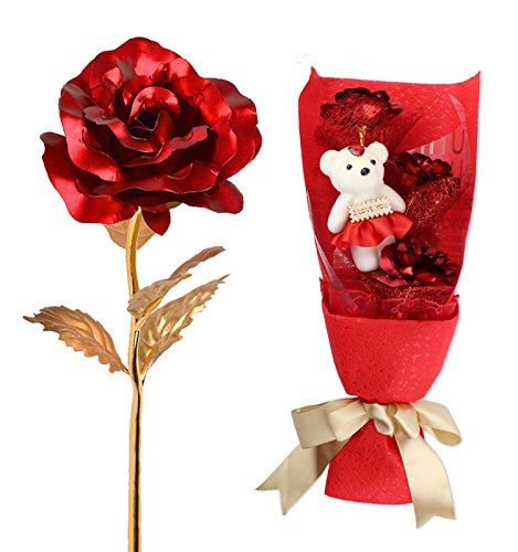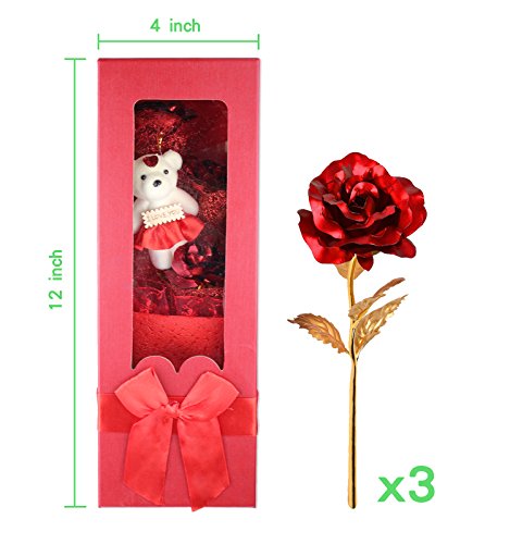 MOJA® 3 Gold Foil Rose Bouquet with Lovely Bear In A Gift Box. Best Gift for Birthday, Valentine's Day, Mother’s Day, Anniversary