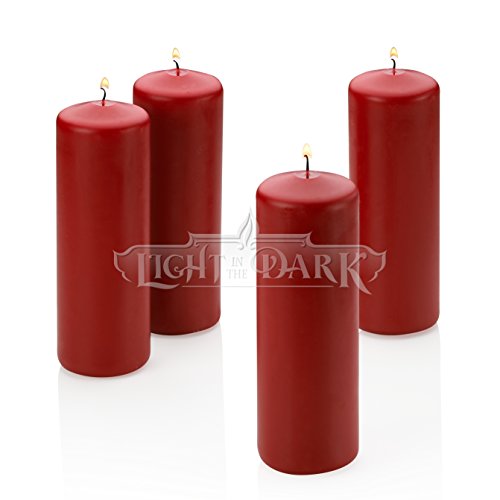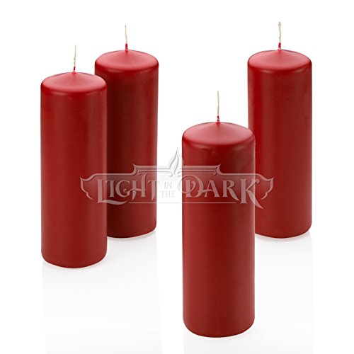 - 4 Red Pillar Candle 2x6 Unscented Burn Time 36 Hours Made in USA
