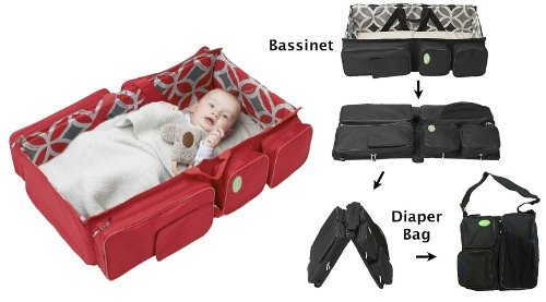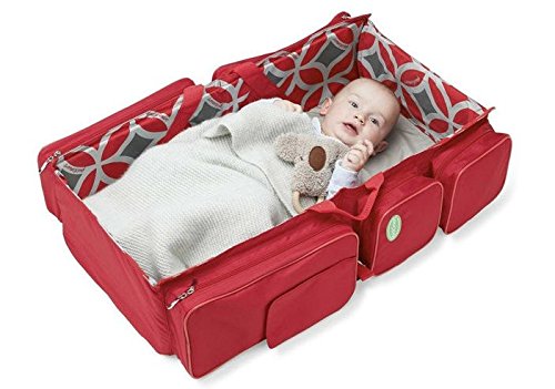 - Feature : The Most Convenient and Innovative Diaper Bag. You can lay your baby down on a clean surface for quick diaper changes or a comfortable nap. Great if you want to travel. Perfect for everyday use. Lots of parents LOVE this lightweight baby bag and travel system that is comfortable in the airport, camping, at the beach... or just a visit over a loved one's house. / Quickly open the portable bag to lay baby down inside the bag for a clean surface with soft changing mat. Comfortable for newborn - 12 months to take a nap. / 4 Pocket insert organizer to carry all essential baby toys, clothes, diapers, bottles or food. / 2 sets of straps allow you to attach bag to any stroller, wear on your shoulder, or cross-body as messenger style bag / Insulated pocket for baby food, snacks, milk, or bottles