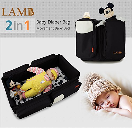 - Title : LAMB 3-IN-1 Baby Diaper Bag + Changing Pad + Infant Baby Travel Bed (Black)