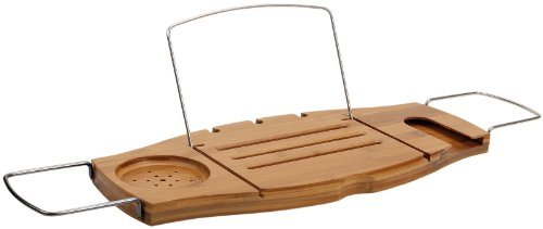 Features soap holder, fold over book support, wine glass holder, place for razor and loofah