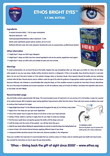-. Feature : Carnosine Eye Drops 3-Pack (6 x 5ml Bottles) - Ethos Bright Eyes™ NAC Eye Drops / Ethos Bright Eyes™ N-Acetyl-Carnosine Eye Drops / Ethos Bright Eyes™ NAC Eye Drops / Soothing eye drops to relive eye irritations and to help rejuvenate tired & sore eyes naturally / Original Formulation As Seen on the Richard & Judy TV Show Trials with Incredible Results!