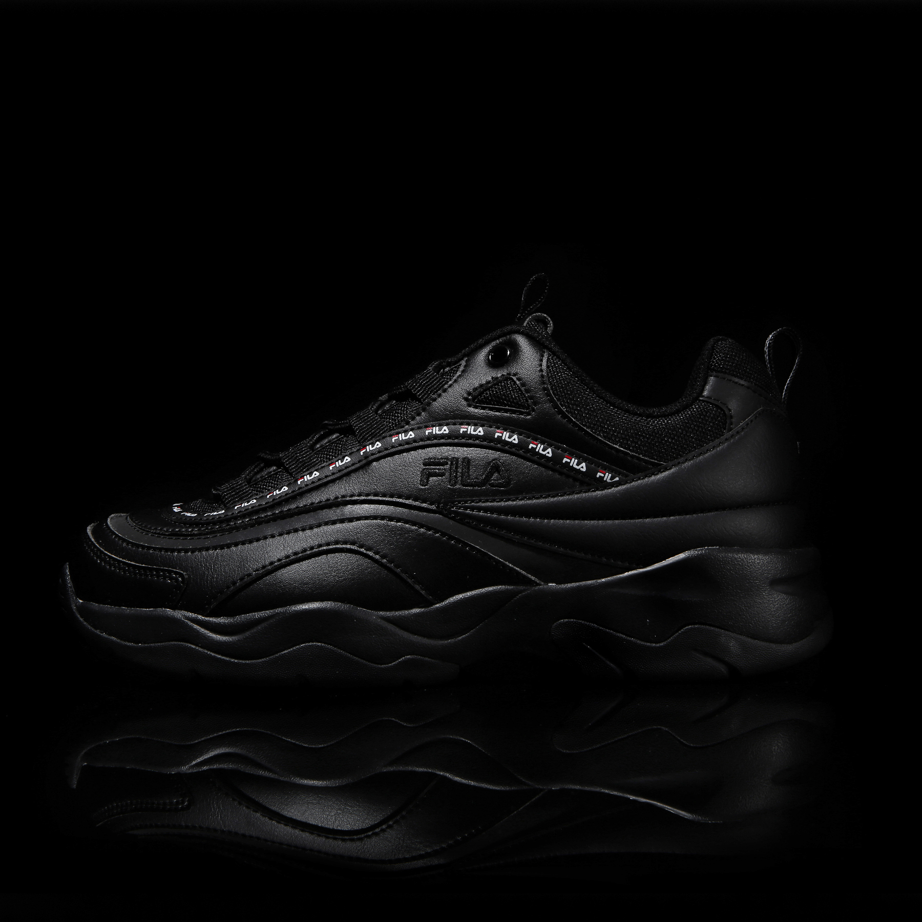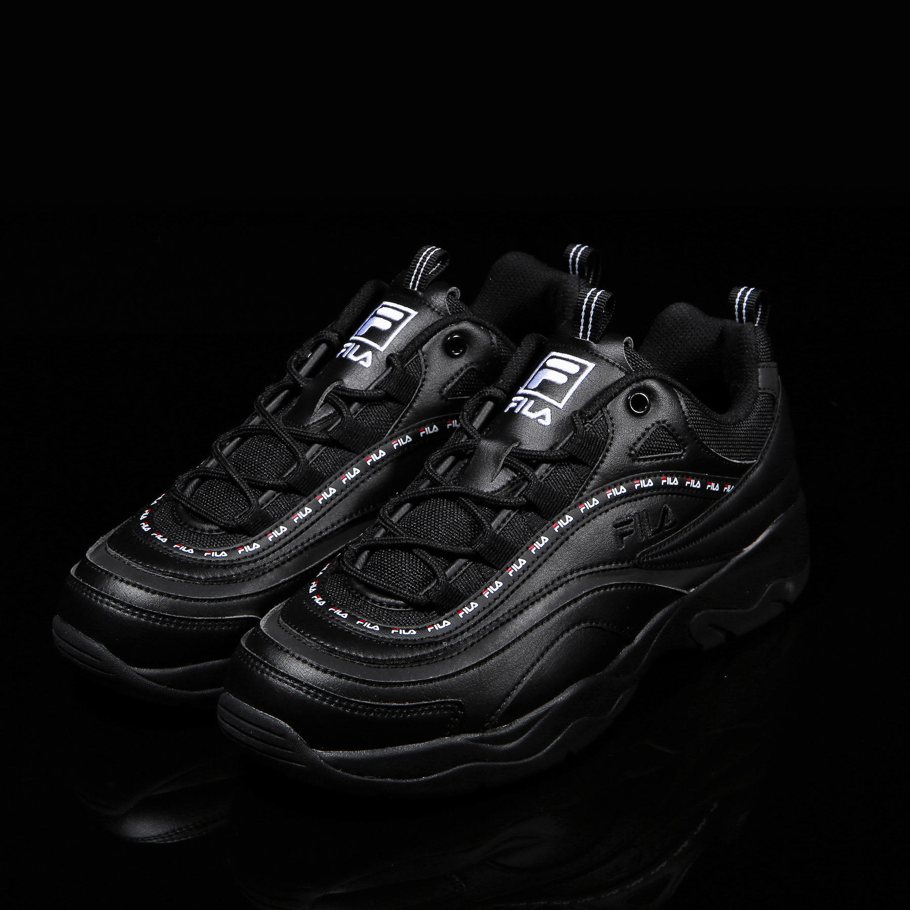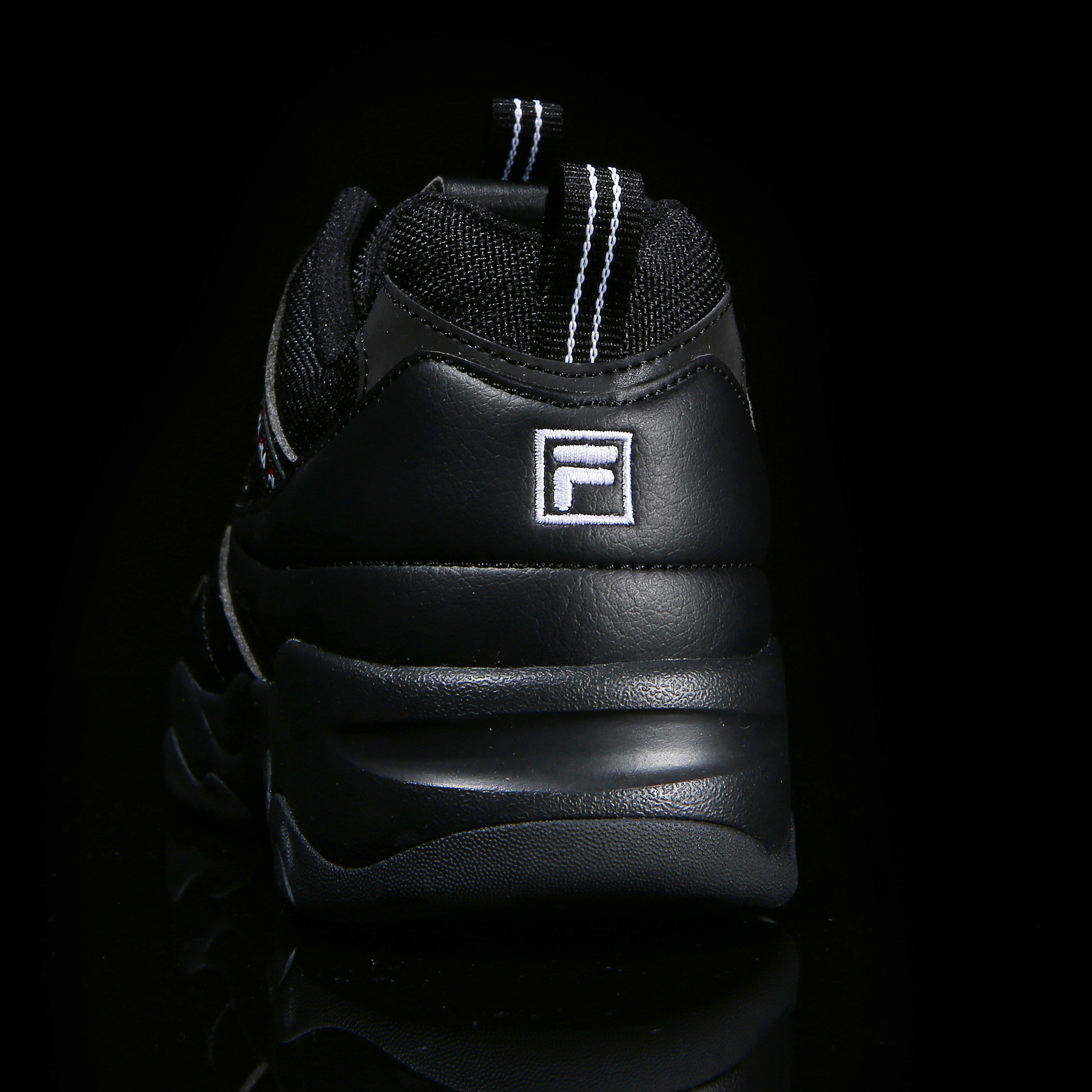 휠라 로고를 패턴화 시켜 포인트 라인에 디자인화 시킴/ 트랜드를 선도하는 어글리 스니커즈로 복잡한 패턴과