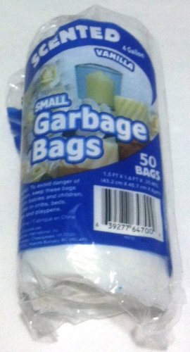 -. Feature : Ideal for offices, restaurants, schools, home, diaper pails. / Small Garbage Bags / White / 50 bags 4 gallon / Vanilla scent