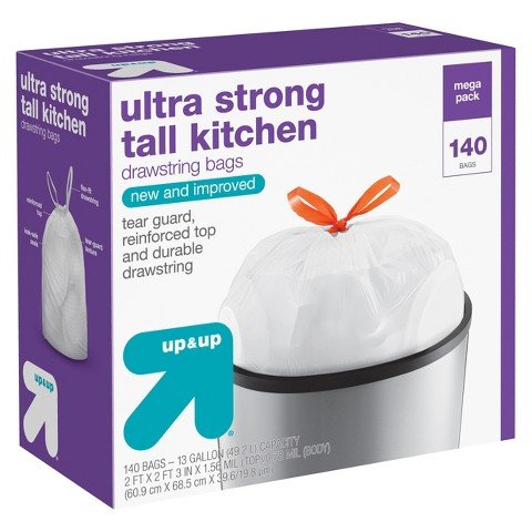 -. Title : up & up Flex Fit Tall Kitchen Drawstring Bags 13 gal 140 ct