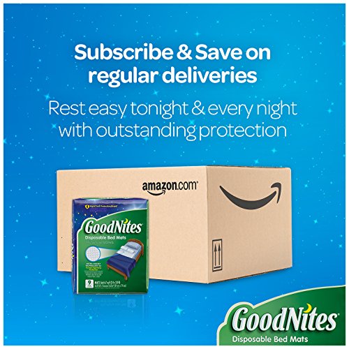-. Binding : Health and Beauty -. Brand : GoodNites -. Color : green -. Feature : Disposable Bed Mats measure 2.5 feet by 3 feet to fit across a twin-size bed and are made with a soft, quiet material that helps your child sleep comfortably / The #1 NightTime Protection Brand*, with Micro-Pocket Technology for trusted nighttime protection *Youth Pant Category / Adhesive strips help keep the mat securely in place on top of your child's bed sheet (recommended for use on 100% cotton/flannel sheets) / Features the same super absorbent technology as GoodNites Bedtime Pants / GoodNites Bed Mats are eligible for Flexible Spending Account (FSA) purchases -. IsAdultProduct : 0 -. Label : Goodnites -. Manufacturer : Goodnites -. Model : GoodNites -. MPN : 0 -. NumberOfItems : 1 -. PackageQuantity : 1 -. PartNumber : 0 -. ProductGroup : Health and Beauty -. ProductTypeName : HEALTH_PERSONAL_CARE -. PublicationDate : 2014-02-08 -. Publisher : Goodnites -. ReleaseDate : 2014-02-05 -. Size : 36 Count -. Studio : Goodnites -. Title : GoodNites Disposable Bed Mats, 36 Count