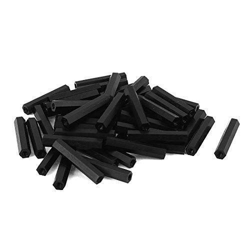 M3x30mm Female Thread Nylon Hex Standoff Spacer Pillar Black 50pcs
