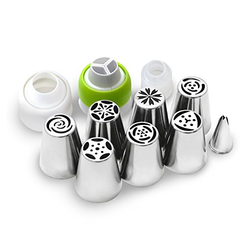 - No real cake decorating skill is required, the tips are easy to use, with a bit of practice you will be creating beautiful cakes and pastries, and show everyone you are an amazing cake decorator! - Do not expect your first attempt to be perfect. Practice, practice, practice! This is all the secret, once you get the hang of it, you will be amazed at what you can do. - Each tip requires a bit different pressure, speed, buttercream texture and works best when piped to different heights. - You can practice on wax or parchment paper before piping on a cakes and cupcakes. - The pastry Bags should be filled about halfway. It is easier to work this way. - To make smaller petals, squeeze gently until icing begins to come out, and then quickly pull away. If you want to make longer petals, pull away your icing bag slowly. 0