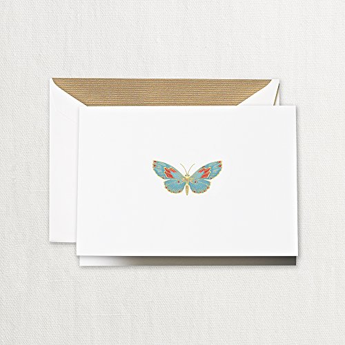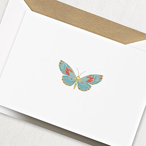(Crane Co.)/Stationery Party Supplies/Stationery/DIRECT FROM USA/Crane Co. Box of 10 Engraved Gold Foil Accented Butterfly Notes with Gold Lined Envelopes