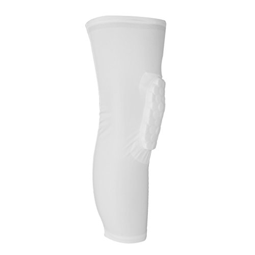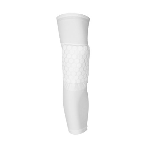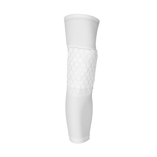 Description: Nice workmanship, with honeycomb pad design to protect leg from crash, as well with anti slip band, no easy to fall off Ideal for athletic protection to protect from cuts and scratches Unsurpassed comfort and protection that enhances performance The fabric is elastic and breathable, and the sweat can be expeled from the breathable fabric Advanced protection to cushion the knee or calf from impact, protect leg, warm muscles to ease cramping Well protect muscles from pulling during in outdoor activities such as basketball, football, cycling, golf, baseball etc. Material: Polyester Dimension: Approx. 17.99 x 6.57 inch/457 x 167 mm Size: L Color: White