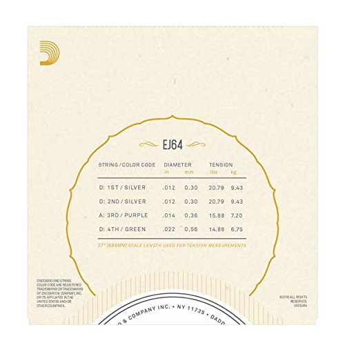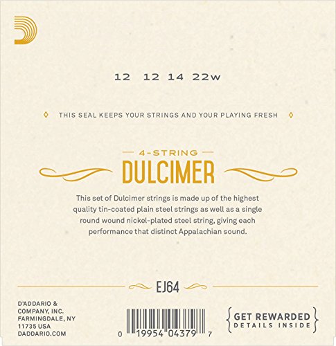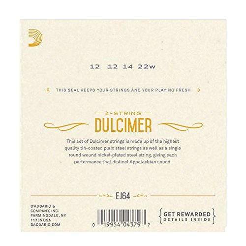 Studio : D'Addario Co. Inc Publisher : D'Addario Co. Inc Binding : Electronics Product Description EJ64's are designed specifically for the 4-string dulcimer and its unique picking and stemming styles. D'Addario offers a wide variety of ethnic instrument strings designed to the exacting specifications of our artists, instrument patterns and international customers. Our computer-controlled winding machinery, laser micrometer inspection, and closed-loop tension control systems promise unrivaled quality and consistency, set after set. 0