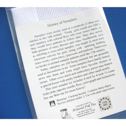 - Includes 6-inch x 6-inch, 11-count Aida cloth, tapestry needle, embroidery floss, color graph, history and instructions