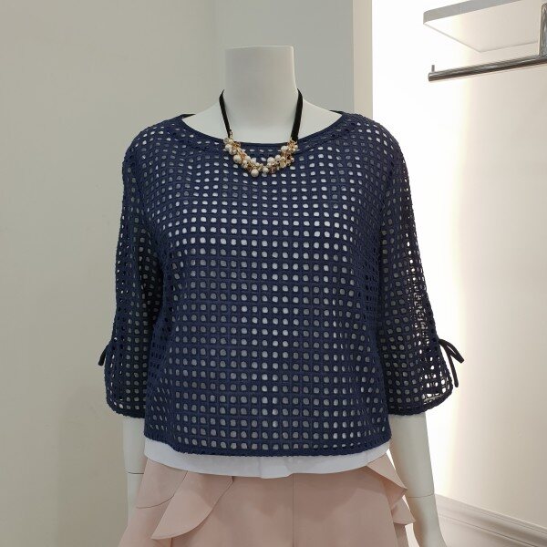 전체 펀칭 시스루 블라우스*함께코디한 화이트색상 이너나시 세트상품