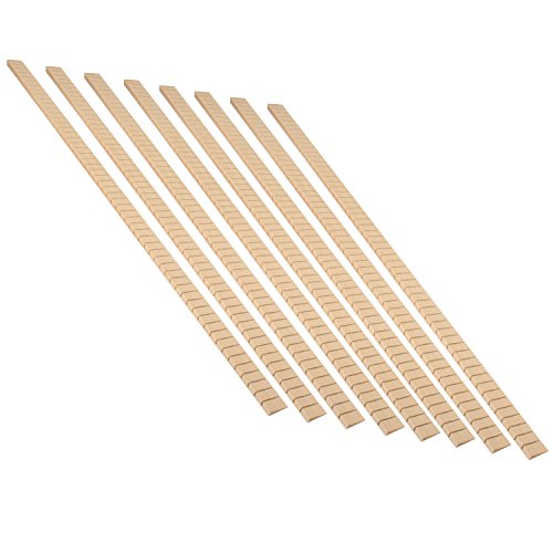 Kerfed lining ("kerfing") forms a surface for gluing and reinforcing a guitar's soundboard, sides and back. Each lining is kerfed (slotted) to allow easy bending to fit a guitar's curved sides. These traditional angle-cut linings have kerfing that faces outward. We also offer a newer radiused style with reverse kerfing (sold separately). The reverse style can add more stiffness to the sides, and a smoother appearance inside the body. Each piece of traditional kerfed lining measures: 7/32" x 9/16" x 15-1/2" (5.56mm x 14.29mm x 393.70mm) This set includes: - Eight strips of basswood traditional kerfed guitar linings, which is enough for Dreadnought and National™ style guitars.