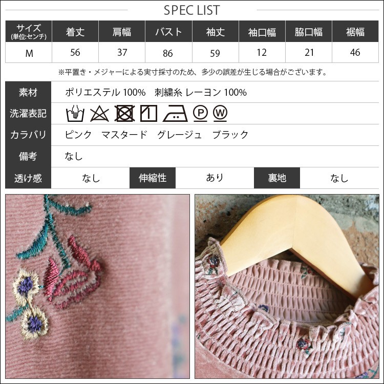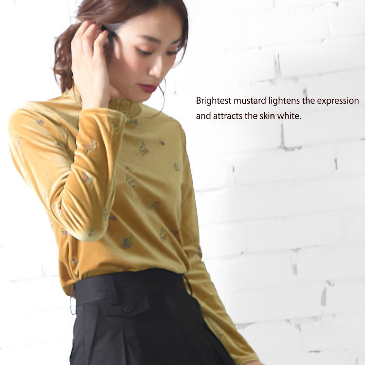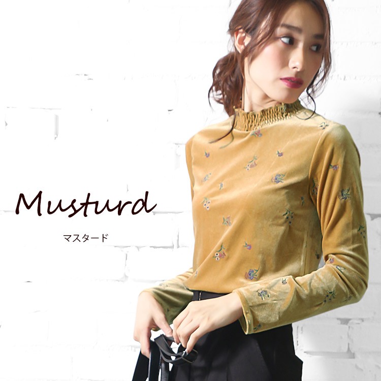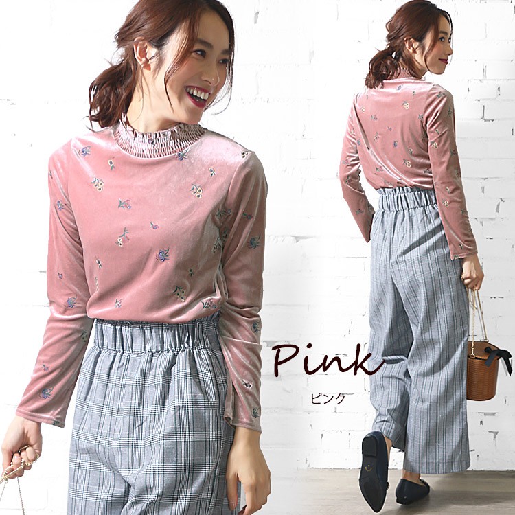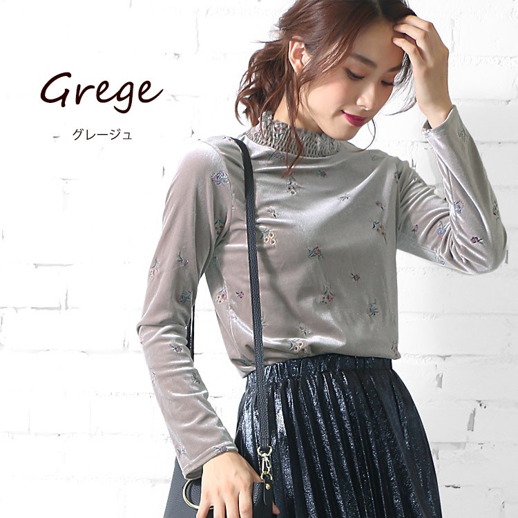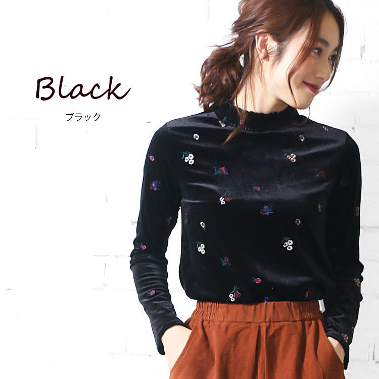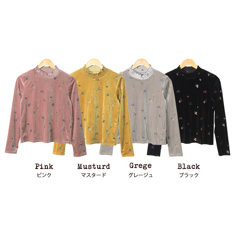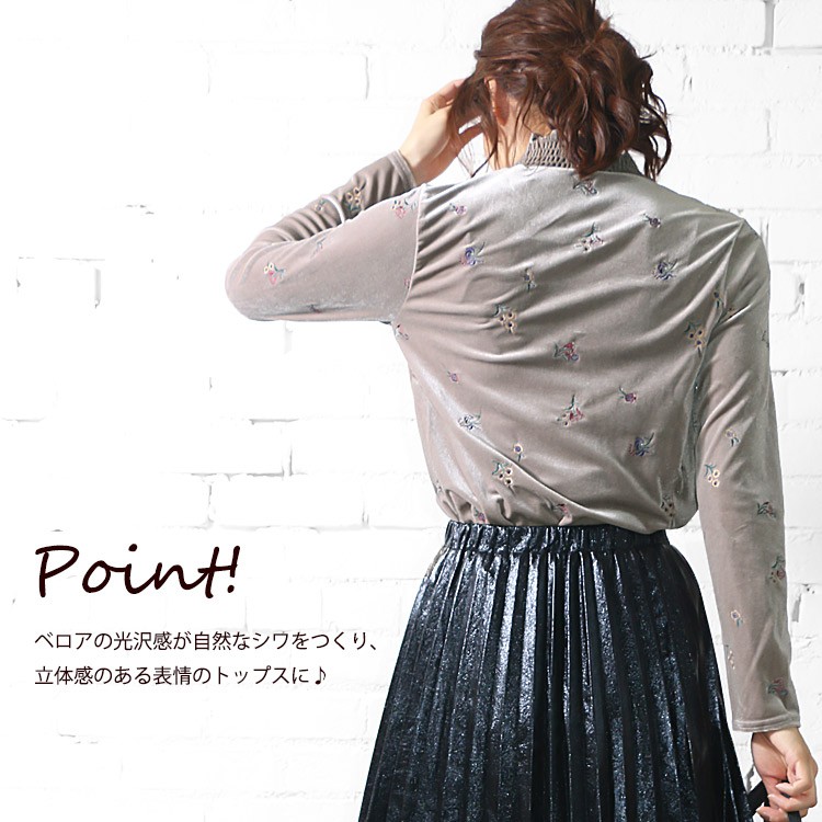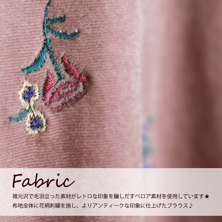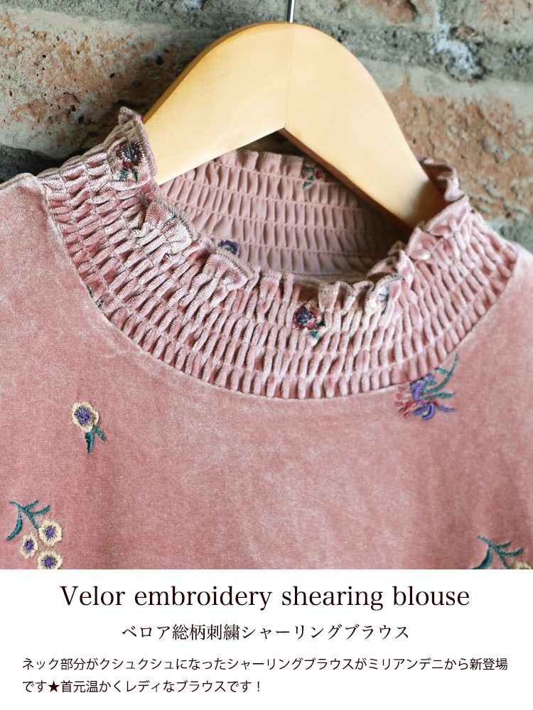 商品名:ベロア総柄刺繍シャーリングネックブラウス