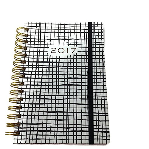 -. Title : Paper Source 2017 12-Month Medium Spiral Agenda Day Planner - B&W Crosshatch