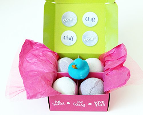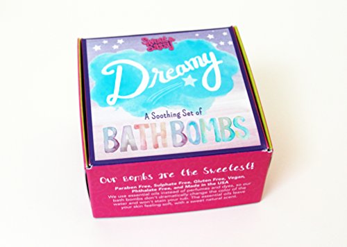 Chill Out and get Dreamy with these Soothing Bath Bombs. Our Bath Bombs are sweet sized at 2.8 ounces (bigger than a golf ball, but smaller than a tennis ball) and fizz for over 5 minutes in the tub. What makes us different is our high quality. Our bombs don't use cheap fillers like sugar and cornstarch. We use essential oils for our scents, rather than perfumes and dyes. This means that our bombs don't significantly change the color of the water or stain your bathtub. You sweet girl will leave the bath with a sweet natural scent from essential oils, rather than with a strong perfume scent. Our bath bombs arrive gift-boxed in all Pink Packaging in our Signature Sweet & Sassy Pink BathBomb Box. Gift Boxes are hand-packaged with the "sweetness" of our Sweet & Sassy team located in Grapevine, Texas. Ingredients: Sodium bicarbonate, Citric Acid, FD&C food color, and essential oils of plumeria, orange, tangerine, vanilla, & strawberry.Feature