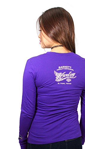 -. Binding : Apparel -. Brand : Harley-Davidson -. Color : Blue -. Department : womens -. Feature : Harley-Davidson Womens Before Sundown Flames with B&S V-Neck Blue Long Sleeve T-Shirt / Specific Color: Spectrum Blue / Dealer Customized Item (Barnett Harley-Davidson) / Officially Licensed Harley-Davidson Product by VF Imagewear -. ProductGroup : Apparel -. ProductTypeName : SHIRT -. Title : Harley-Davidson Womens Before Sundown Flames Blue Long Sleeve