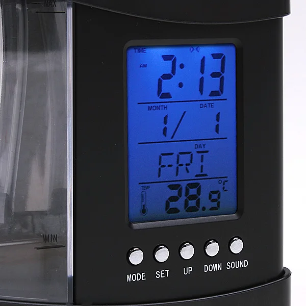 Backlighting LCD display is featured with alarm clock, calendar, time, date, temperature, and snooze.