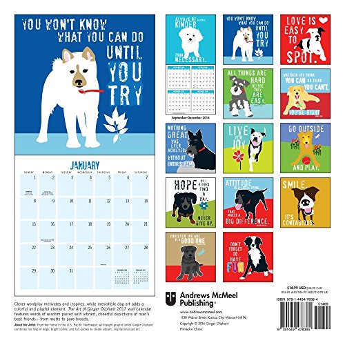 -. Binding : Office Product -. Brand : 2017 Calendars -. Feature : 2017 Calendar featuring beautiful full color photographed images for every month of the year. / Includes Holidays and Observances. Perfect for office spaces, bedrooms, classrooms and more! / Keep your appointments and Birthdays organized in one place! / Makes a great gift for friends and family! / Dimensions: 12" x 12" -. Label : GrandmasGiftware -. Manufacturer : GrandmasGiftware -. MPN : 5654 -. PackageQuantity : 1 -. PartNumber : 5654 -. ProductGroup : Office Product -. ProductTypeName : OFFICE_PRODUCTS -. Publisher : GrandmasGiftware -. Studio : GrandmasGiftware -. Title : The Art of Ginger Oliphant 2017 Wall Calendar: Smile. It's Contagious., 12" x 12"