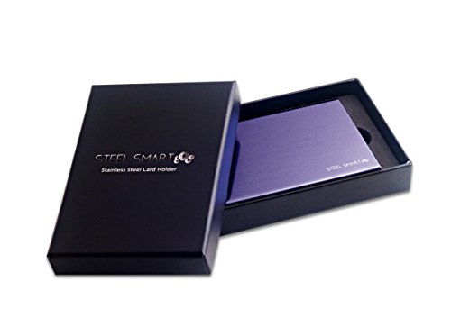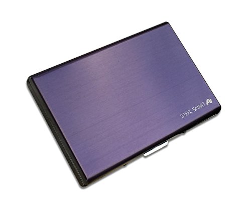 Credit Card Case with RFID Technology - Brushed Stainless Steel Business Cards Holder For Men & Women - Travel Metal Wallet Protecting Against Fraud & Identity Theft - (Black/Brown/Blue/Purple)