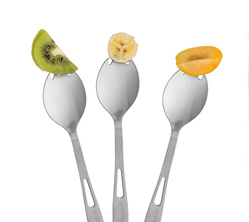 COMPACT, STACKABLE - A 4-piece set, this spoon-fork combo utensil set stacks together for easy, light weight, travel convenience. A great addition to your mess kit