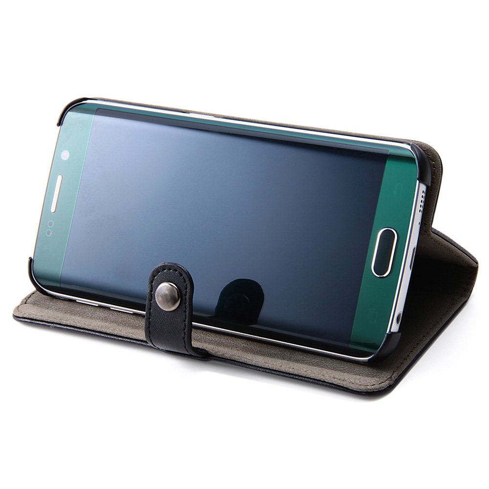 Rayout PU Leather Simple Diary Type Case for Galaxy S6 Edge (Black)