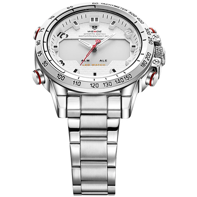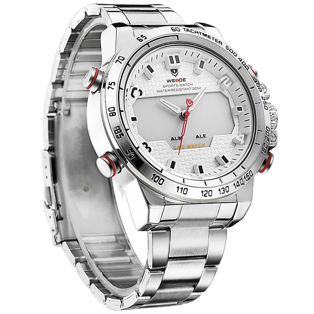 | [해외] 웨이드 스포츠 군사 시계 다기능 석영 LCD 디지털 가죽 운동 방수 시계 남성 손목 럭셔리 브랜드 |