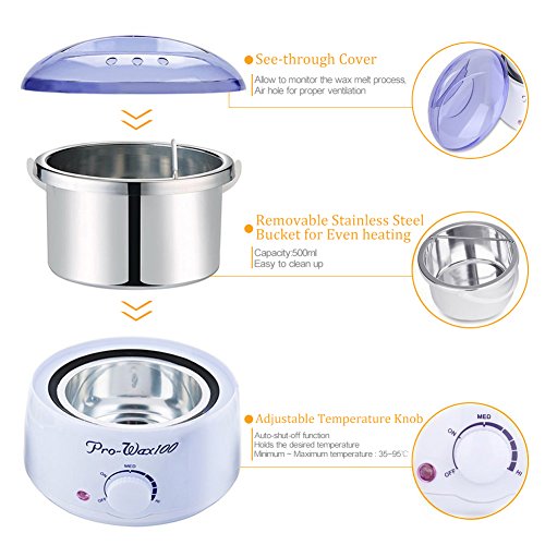 - FAST WAX HEATER - Heats all wax types such as hard wax, soft wax, Paraffin wax, cream wax and more,adjustable temperature,easy to use with a removable insert pot and a lid cover to prevent contamination