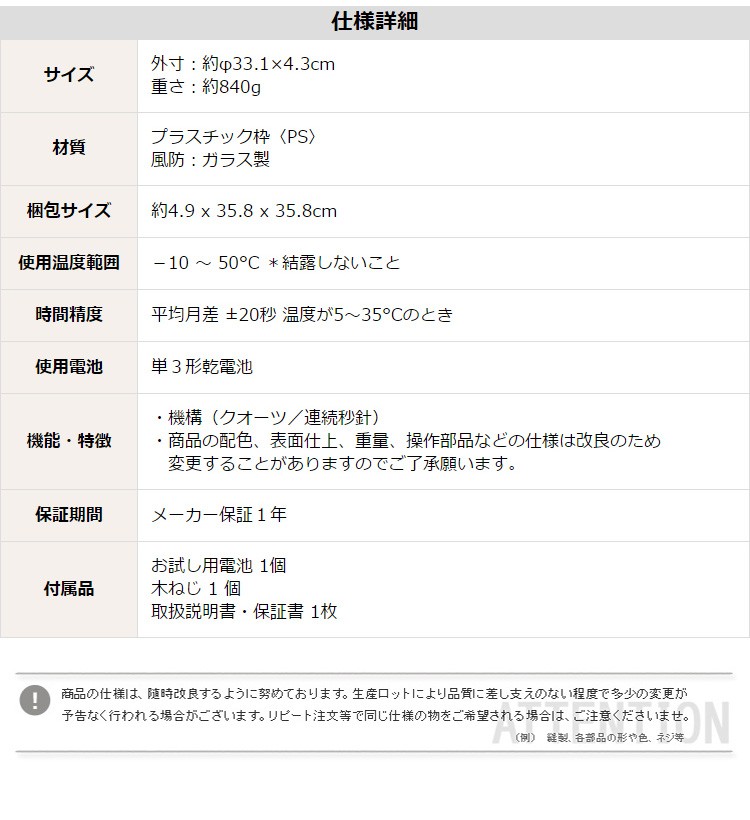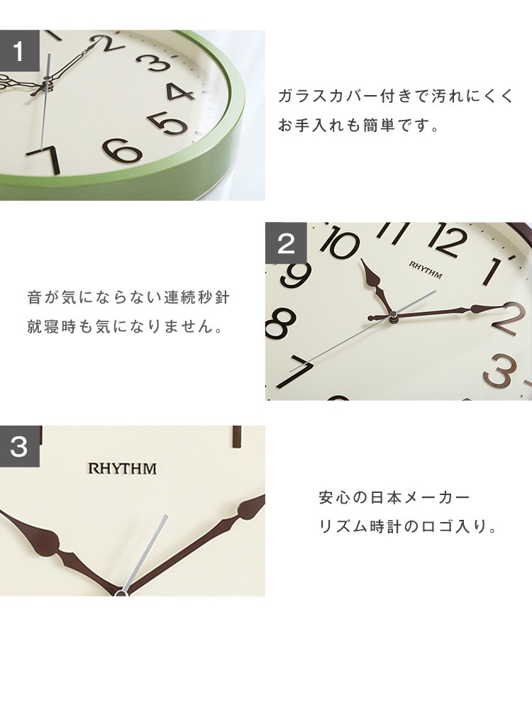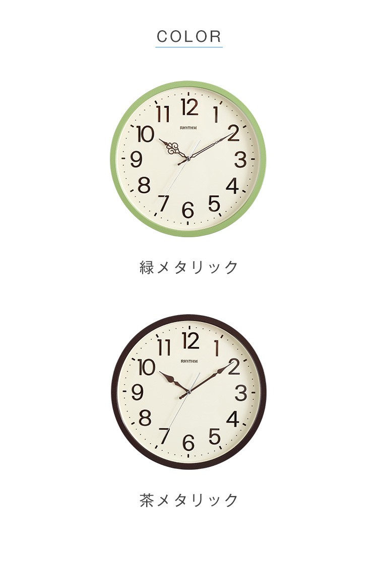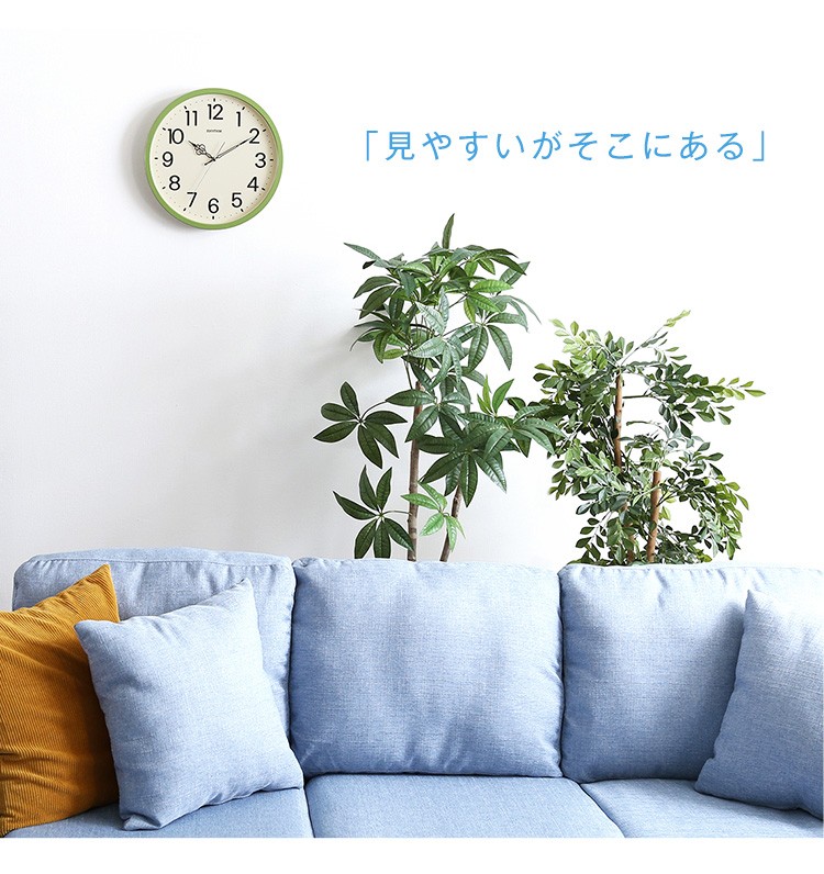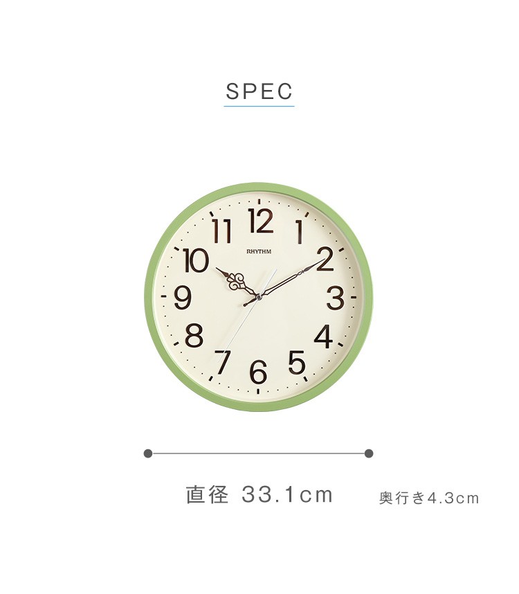 【商品について】掛け時計 ナチュラルなインテリアにぴったり メーカー保証1年|オルロージュリフレ■サイズ:外寸:(約)直径 33.1cm 奥行き 4.3cm※商品重量:(約)1.08kg■カラー:グリーン ブラウン■素材:・プラスチック枠(PS)・風防:ガラス製■その他:・梱包サイズ:(約)4.9x35.8x35.8cm・梱包重量:(約)1.5kg【商品名】掛け時計 ナチュラルなインテリアにぴったり メーカー保証1年|オルロージュリフレ