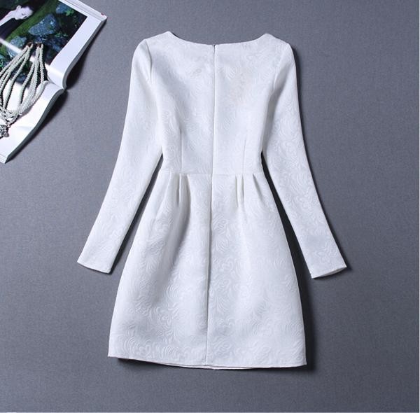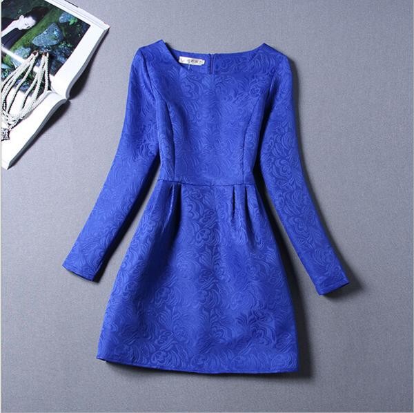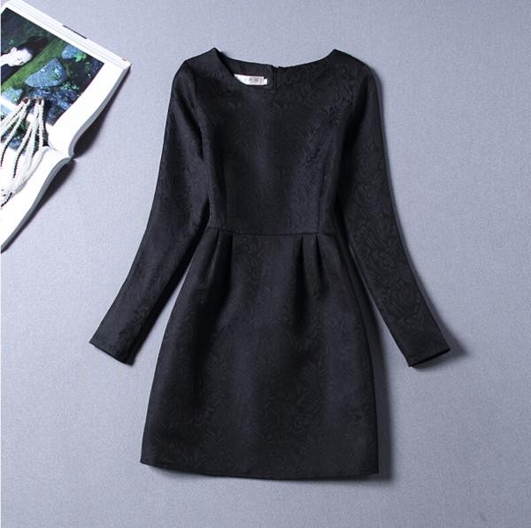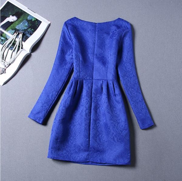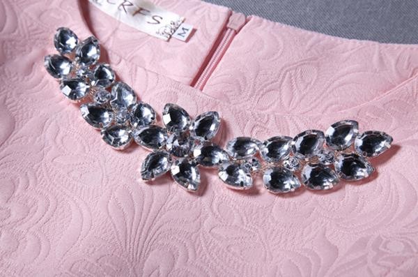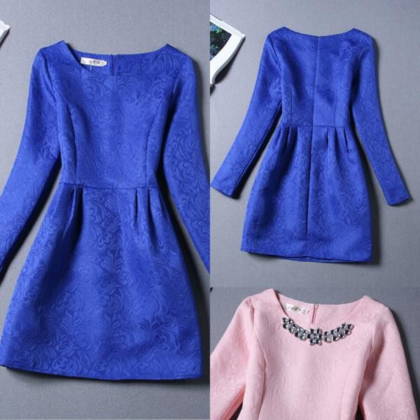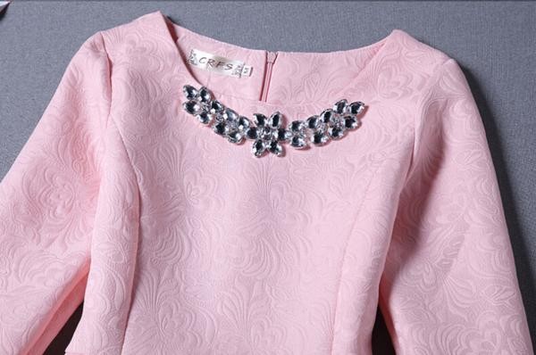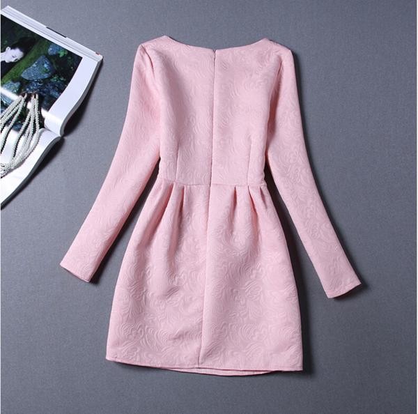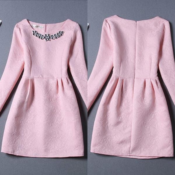 プチプラビジュー付長袖 ジャカードドレスワンピース ディープピンク/ M