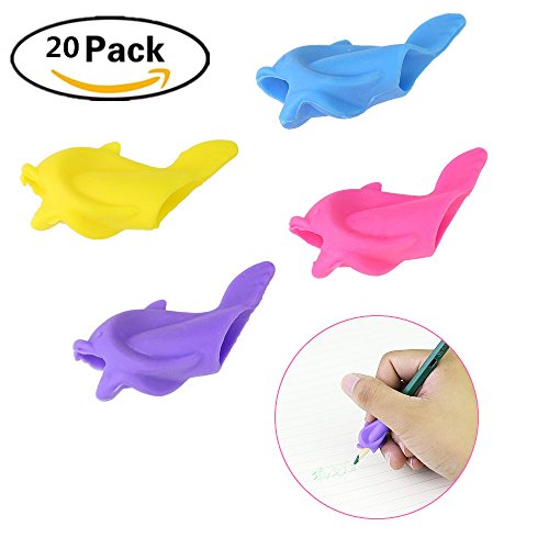 RenBa Pencil Grips for Kids, Right Handed Pen Training Grip Holder for Kids, Students and Adults, Assorted Colors (20 Pack)